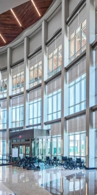This 469,000 square foot building is the largest tribal outpatient health facility in the United States. The project includes over 100,000 square feet of conventional stick-built curtain walls, ribbon windows, and both exterior and interior storefront systems.