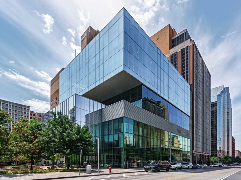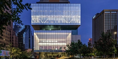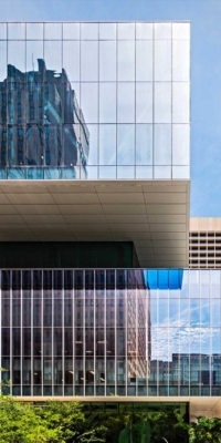 Consisted of two (2) custom designed steel curtain walls covering approximately 50,000 square feet. One curtain wall utilized 1-3/4” x 9” x 36’ long un-spliced steel bars with custom steel setting chairs allowing for a glazing to be installed without the use of horizontal members. The second curtain wall utilized 3-1/2” x 7” x 42’ long rectangular tubes with custom applied cassettes to provide a 4-sided SSG application. Even more impressive, both of these curtain walls were designed to span the full 36’ without any mid-span structural support. The remaining 10,000 ft2 of glass façade consisted of a custom 3” x 11” cassette curtain wall and a conventional 10” deep stick built curtain wall.